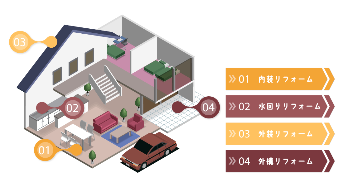 お客様の「もっと快適に暮らしたい」という想いに寄り添い、住まいの価値を高めるリフォームをご提案します。